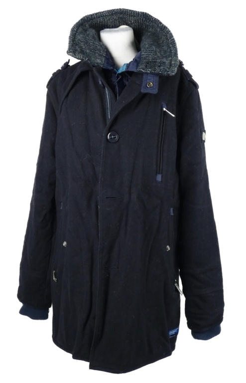 Pánský tmavomodrý vlněný kabát s límcem Superdry