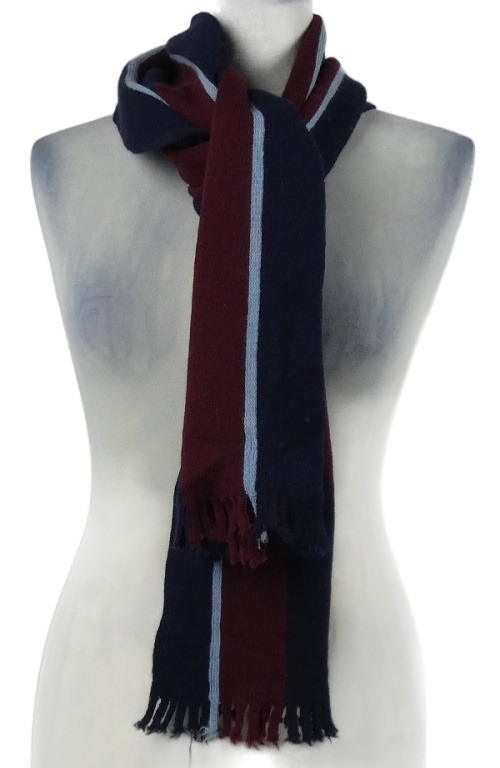 Pánská tmavomodro-červená pruhovaná vlněná šála s třásněmi