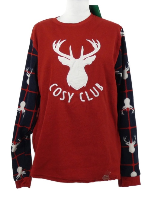 Nové - Pánské červeno-tmavomodré fleecové pyžamové triko se sobem