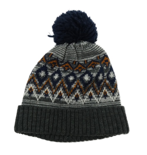 Pánská šedo-barevná vzorovaná pletená čepice s bambulí George