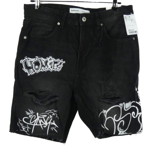 Nové - Pánské černé riflové kraťasy s nápisy Bershka vel. 31
