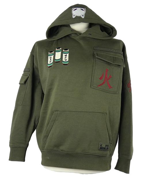 Pánská khaki mikina s nášivkami a kapucí - Naruto