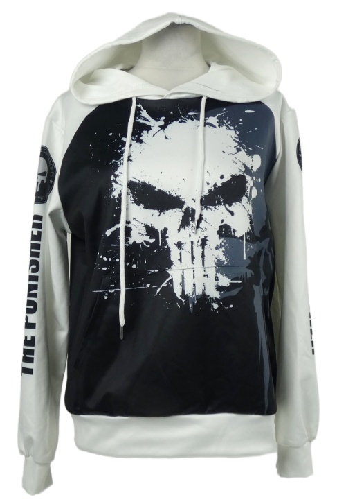 Pánská černo-bílá sportovní mikina s lebkou a kapucí