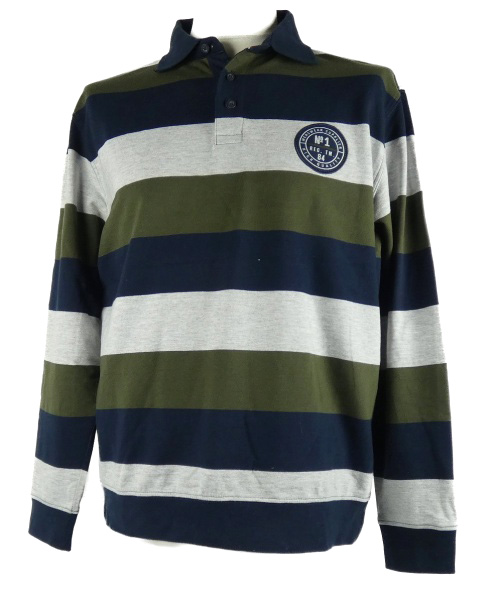 • Pánská khaki-tmavomodro-šedá pruhovaná mikina s límcem Bexley´s