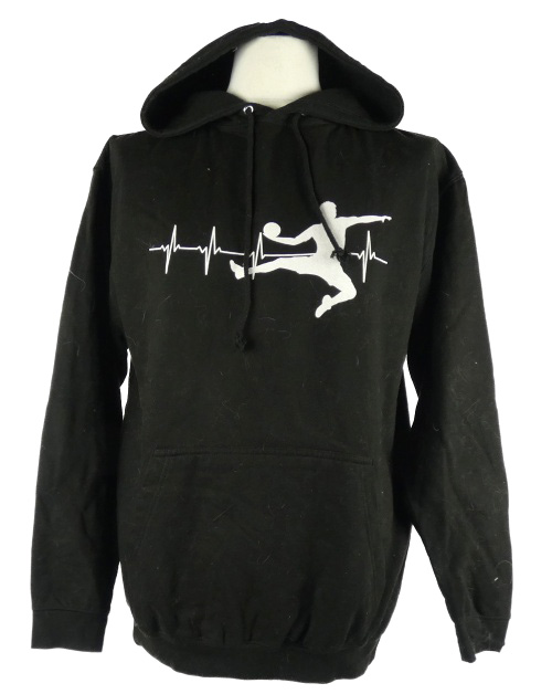 Pánská černá mikina s fotbalistou a kapucí