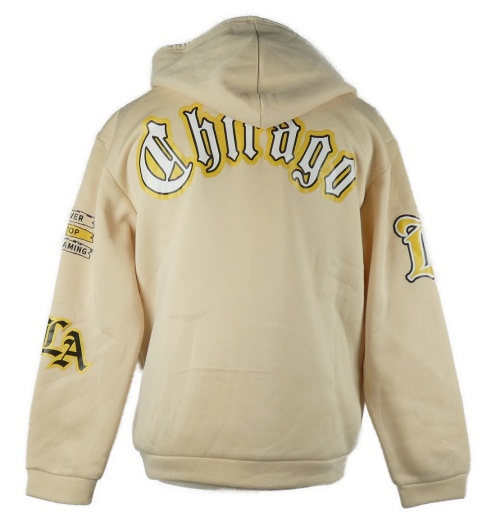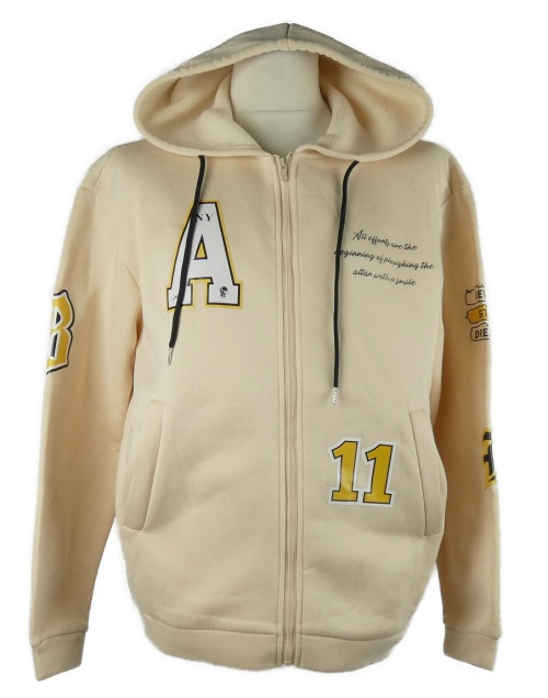 Pánská béžová propínací mikina s nápisy a kapucí Shein