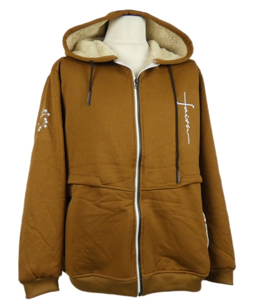 Pánská hnědá propínací zateplená mikina s nápisy a kapucí