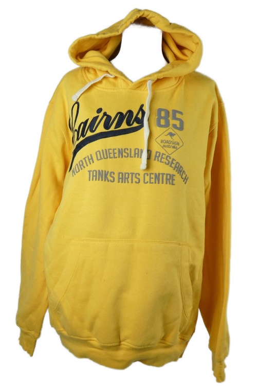 Pánská žlutá mikina s nápisy a kapucí Roadsign