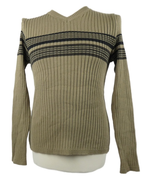 Pánský khaki žebrovaný svetr s pruhy Zara