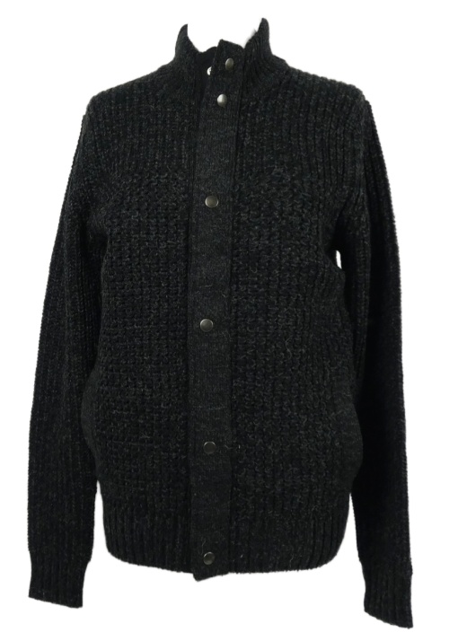 Nové - Pánský černo-šedý melírovaný propínací svetr F&F