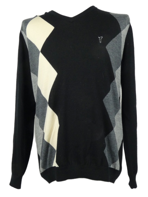 Pánský černo-šedo-bílý károvaný vlněný svetr Golfino