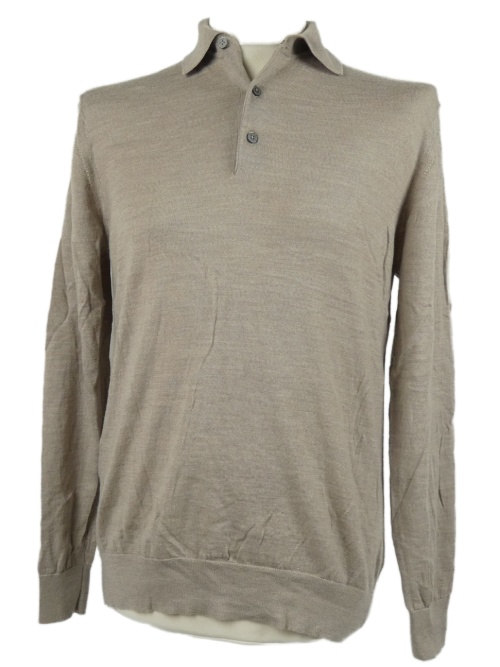 Pánský béžový lehký vlněný svetr s límečkem M&S