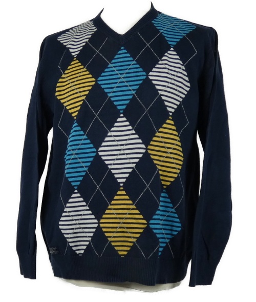 Pánský tmavomodrý károvaný svetr Basefield