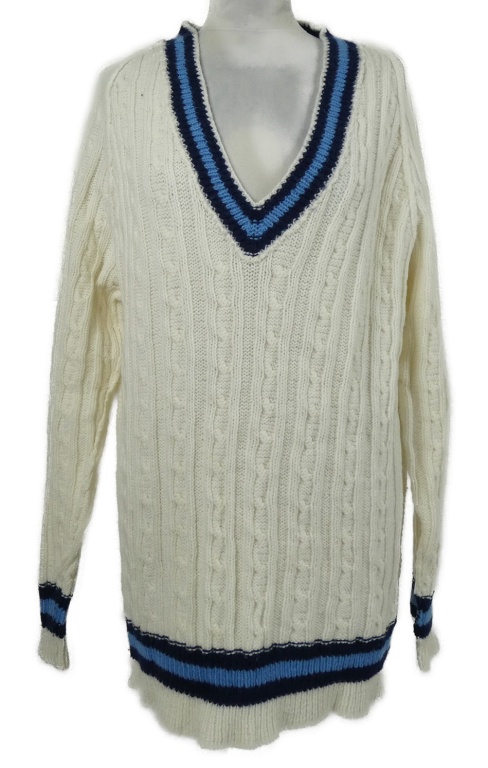 Pánský smetanový vzorovaný svetr s modrými pruhy