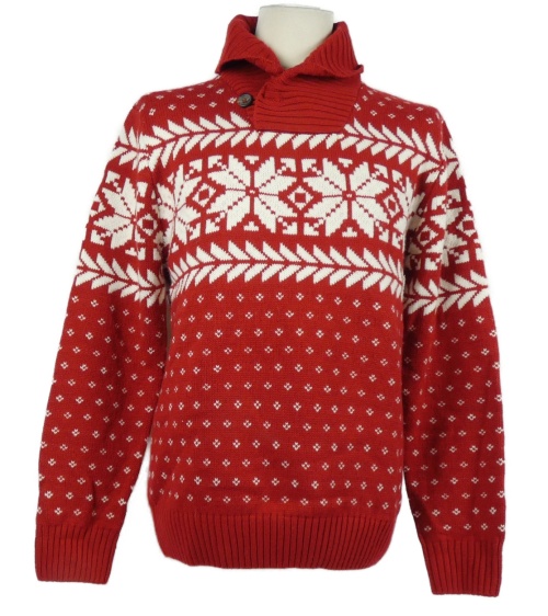 Pánský červeno-bílý vzorovaný vlněný svetr se stojáčkem C&A