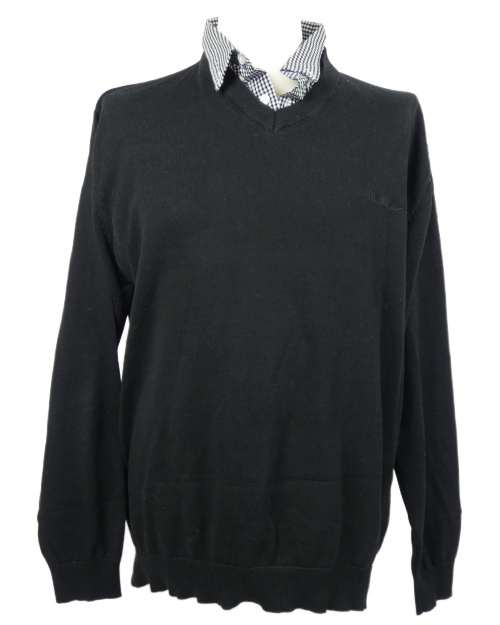 Pánský černý svetr s košilovým límečkem Pierre Cardin