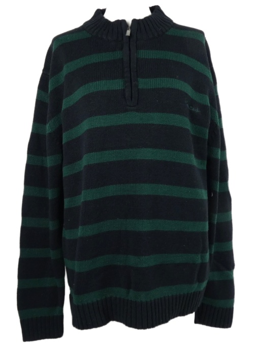 Pánský tmavomodro-zelený pruhovaný svetr Pierre Cardin el. 3XL