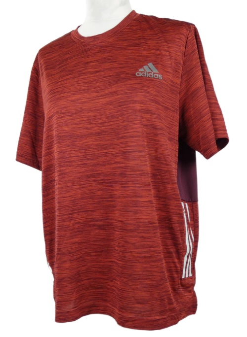 Pánské červeno-vínové melírované sportovní funkční tričko s pruhy Adidas