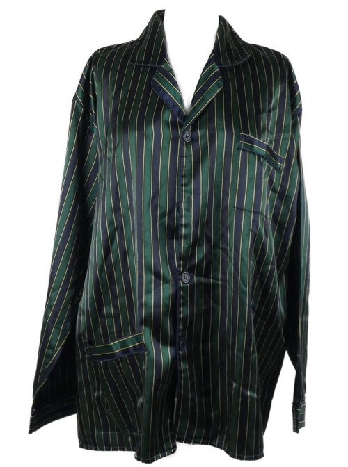 Pánský zeleno-tmavomodrý pruhovaný saténový pyžamový kabátek