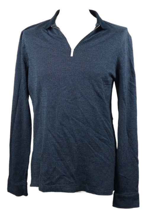 Pánské tmavomodré vzorované úpletové triko s límečkem M&S