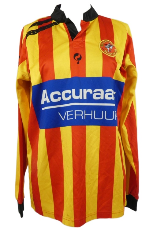 Pánský červeno-oranžový pruhovaný dres s číslem